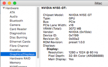 Feeling defeated...I've been struggling with a new to me 870m for the last two nights. I'm getting a blank screen on the iMac but screen sharing works. I've tried everything I can think of. I read through all these posts multiple times. I should have gone with the verified 780m choice. I've been holding out for a $300 deal or so on one of those. In the meantime a 870m showed up locally on Craigslist. I talked the guy way down and figured it was worth a shot. The thing that's strange is that OSX recognizes the card as an nvidia card and the ram (3GB) is shown correctly but the model is snown as the chip NVIDIA N15E-GT 3072 MB and not the 870M I would anticipate seeing. Am I overlooking something major here? Is it possible that I need to install a new firmware on the card? I don't have bootcamp set up on this iMac. Is it possible to install a new firmware (possible an unlocked version) via OSX? I'm out of ideas so I'd appreciate any ideas from the other members who have upgraded their GPUs to non-Apple cards.