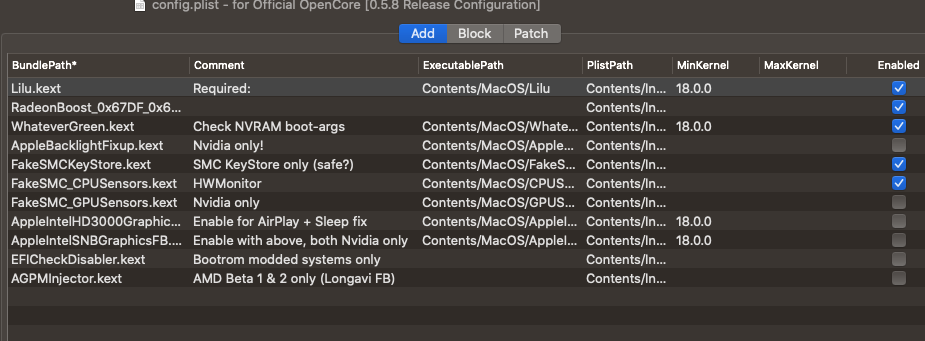No, you have to edit the config.plist kernel section manually. The name of the kext in this section must match the name in the EFI/OC/KEXTS folder.Thanks for this suggestion, I already read the RadeonBoost thread and injected the stock RadeonBoost kext trying to resolve the performance issue, forgot to mention that.
