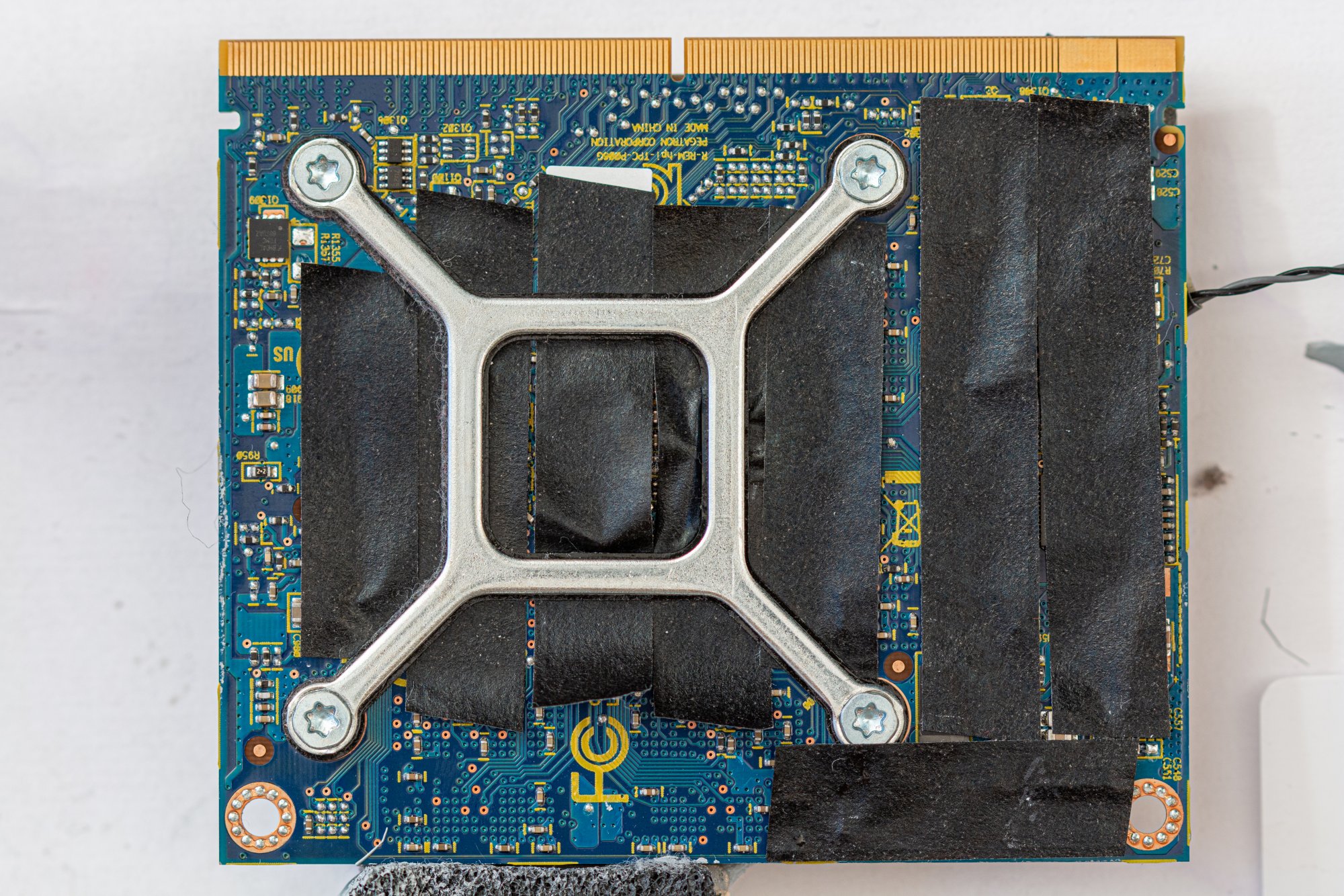 - I de-assembled the graphics card again and used insulating tape all over it, just to exclude short circuits with the heatsink (see following pictures) as suggested: