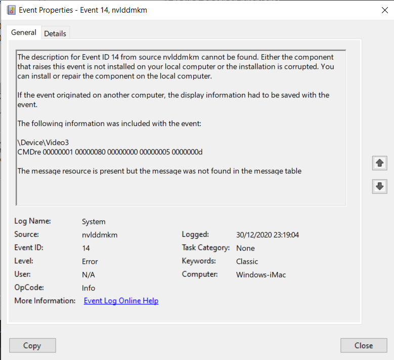 i have checked the system logs in windows and i see a nvlddmkm error 14, which is a driver related issue.