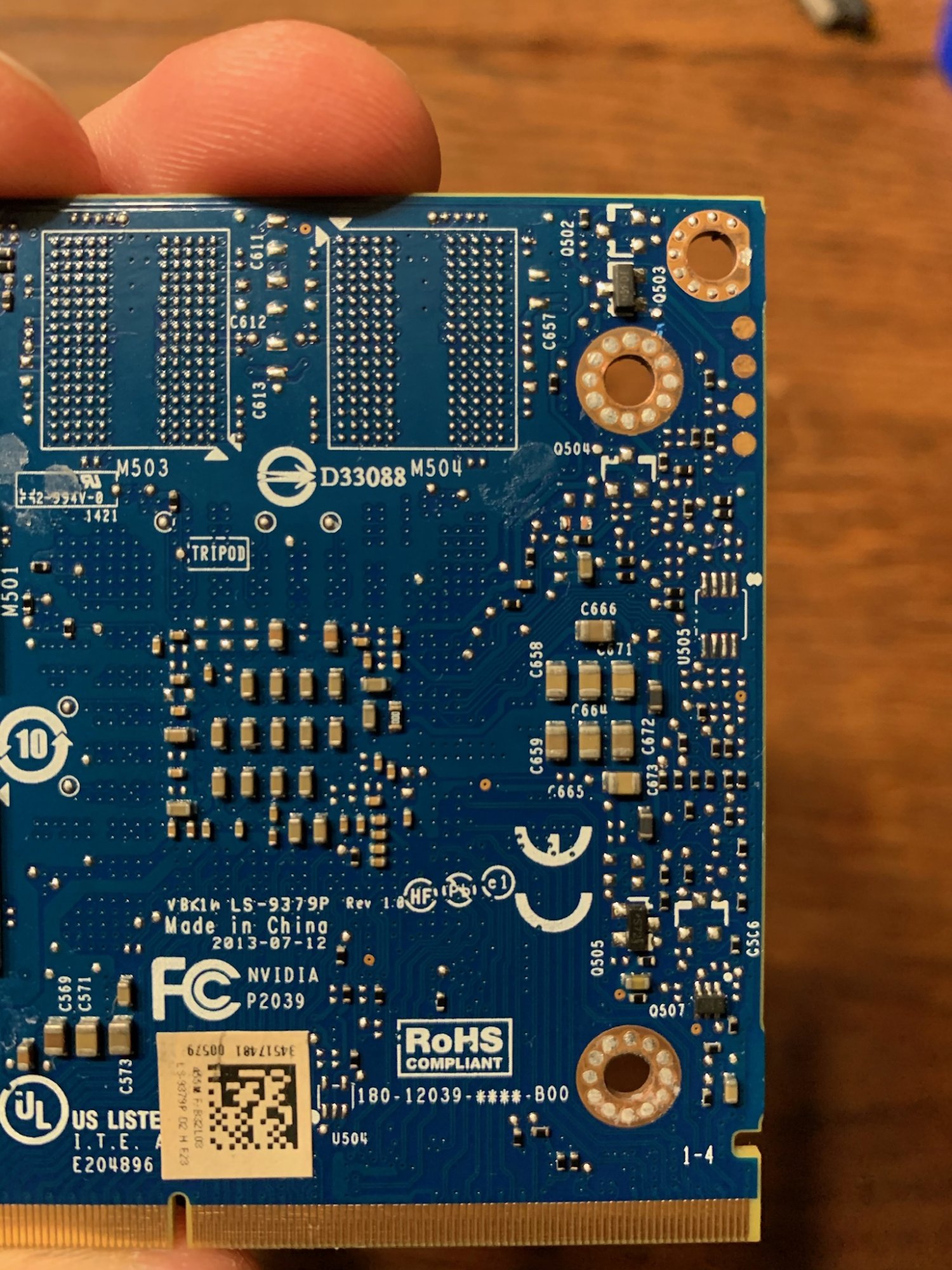 A few days ago, I mentioned that I thought my GPU was overheating. I had only been using thermal pads to cool the GPU, and it was idling around 65ºC. When I tried using it, the GPU would easily reach 90ºC under load. On top of this, my benchmark scores were about half of what I expected them to be. To fix this problem, I placed a 1mm copper shim coated in Arctic MX4 thermal paste between the GPU die and heatsink. I also covered the RAM chips in K5 Pro thermal paste so that they contacted the heatsink.