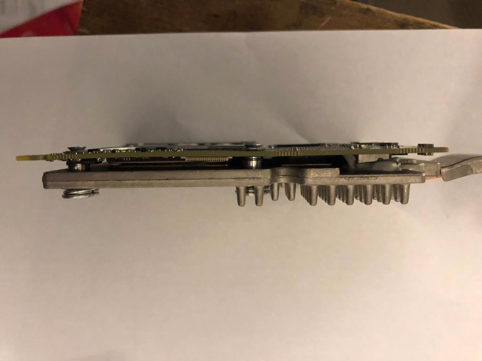 I encountered some problems I was expecting since I disassembled my 27 imac 2011 multiple times since I did a succesful baking 5 months ago to the original card, wich worked great until it didn't, and i believe it hapenned because after the baking, I never connected the little temperature sensor conector that comes from the heatsink of the GPU to the motherboard, after that I never heard the fans spin anymore and though it was because of the HDD swap i did simultaneously with the baking (I went from 1HDD + 1 DVD ROM to 3 SSD) pics attached. so that mistake I believe is what 5 months later ended up toasting the original Radeon 6970 1gb card, the imac used to get finger burning hot.
