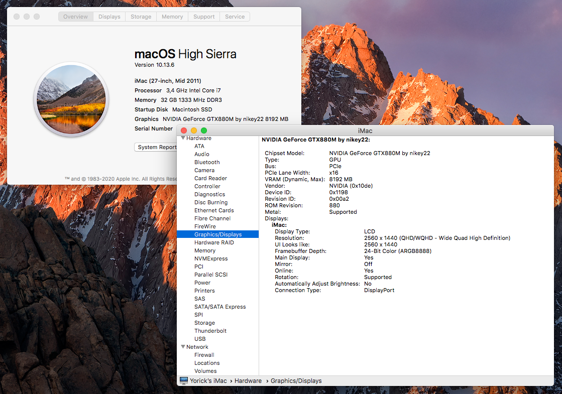 I have a question about your 2010 imac 27 SATA drives: are you using the original HDD (rotational) also in addition to your SSD? I am having a problem with my 2010 imac 27 WX4150 GPU Upgrade after following your excellent write ups. I am mostly successful and able to boot my SSD from OC 0.6.5pre SD like you into High Sierra. But I did not use any insulation on the card either side, just installed bare into the MXM-B heatsink. My problem is I cannot run my 1TB rotational HDD at all because the PSU refuses to POST when it is connected. My 512MB SSD runs fine with the WX4150 as long as the HDD is not connected to PSU. I have ordered some Kapton tape to insulate like you did, but I am puzzled why the system cannot run both of the SATA drives at the same time? It seems to me if it was a shorting situation with the WX4150 in the MXM neither of the drives would be working. I am hoping the Kapton tape will correct the problem and I will be able to keep using the 1TB HDD for time machine and other backup purposes. Thanks for the very detailed write ups in your recent posts of your imac 2010 WX4150 GPU Upgrade. Note: I did use the 1mm copper shim, MX-4, and K5 pro just like you advised. Also am using the same Dell 4GB bios.