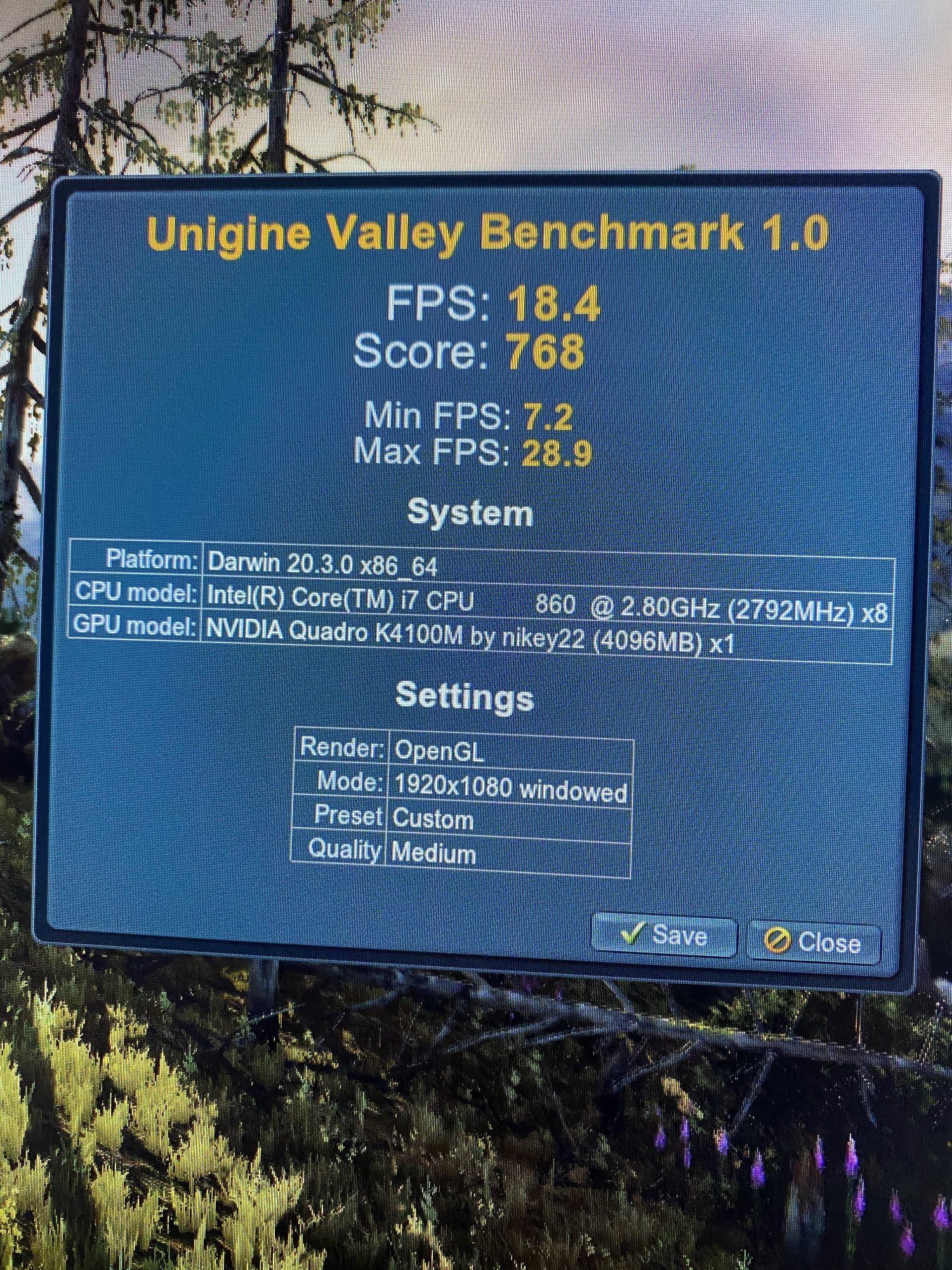 - It runs Unigine Valley with adequate results (FPS=38 score=1588)