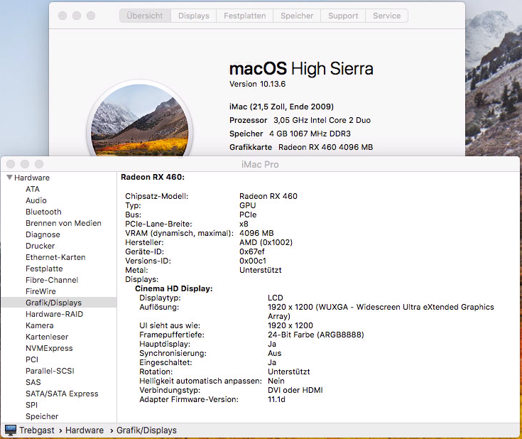 Worth to mention that not all 2009 iMacs feature an MXM gpu, so if someone wants to buy this machine to upgrade, check the model first.WX4150 with Late 2009 / Core2Duo iMac10,1Lately I got a cheap 21.5 iMac10,1 and decided to put a WX4150 into it. Running with High Sierra I needed to install the AAAMouSSE.kext to enable the AMD HD4000 driver in High Sierra.