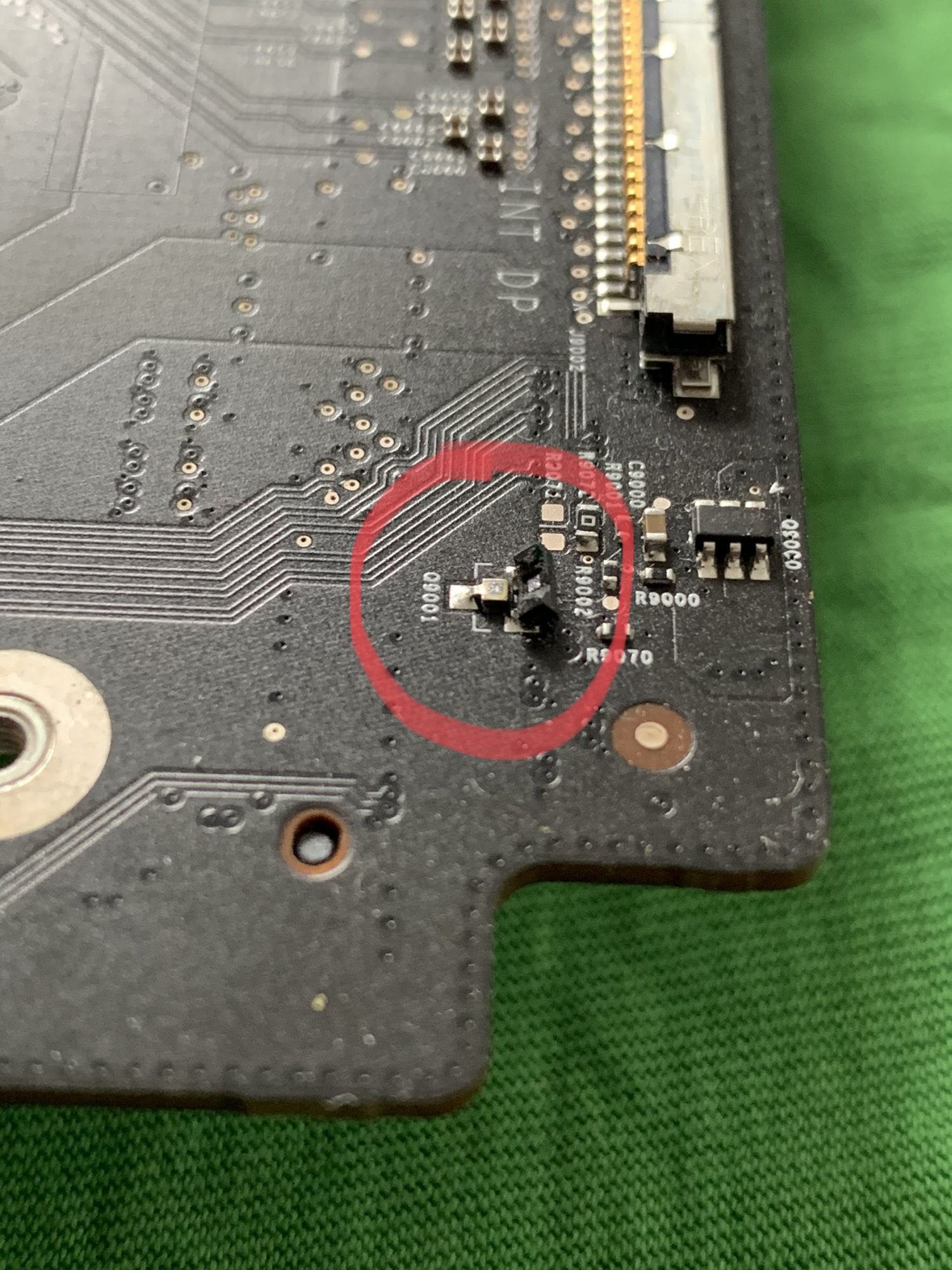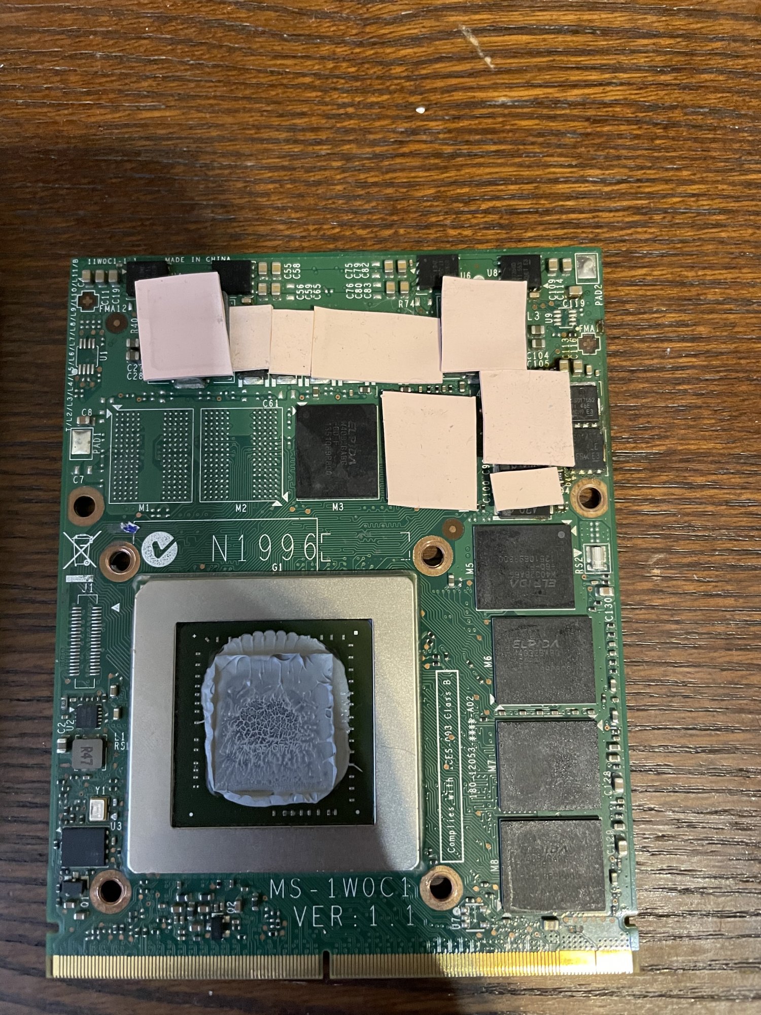 How to prevent knocking off this component again: Insert a hard plastic card (bank card, etc.) under the metal frame before shaking the MXM card out of its position.