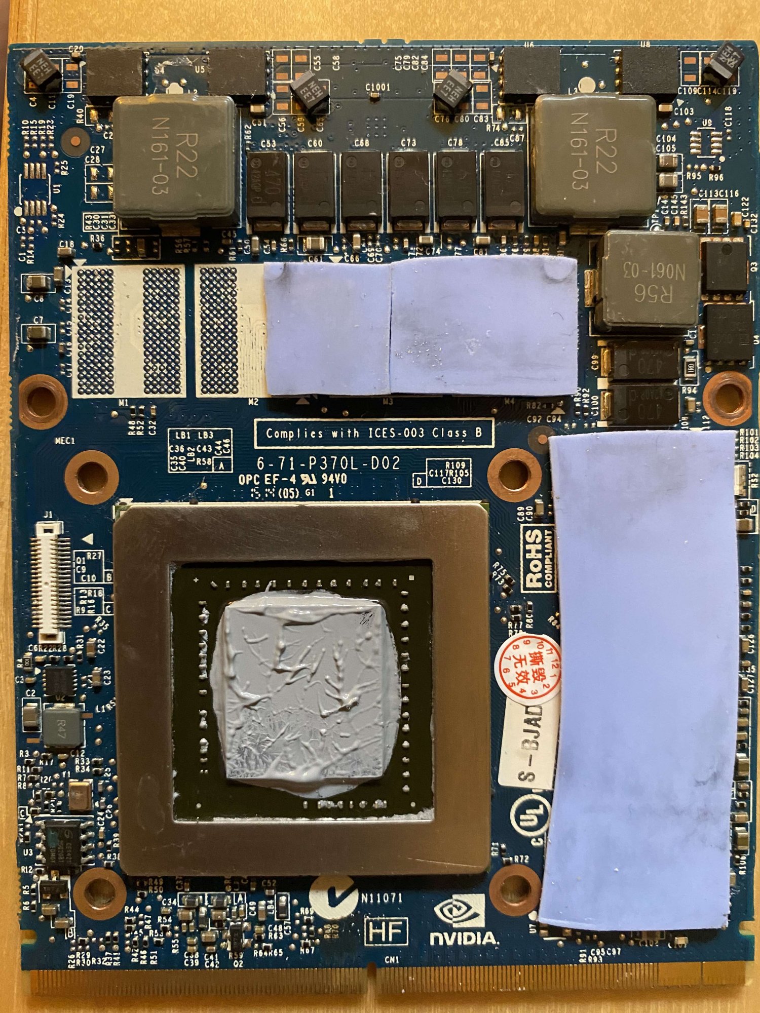 The problem with all these used MXM GPU cards is always the risk of getting one thats had a hard life and has problems. Even if the seller genuinely tested it this still won’t guarantee fault free. The MXM interface has 3 display outputs only 1 of which is used for the internal iMac screen. Testing in a laptop for example won’t guarantee it will work in an iMac.