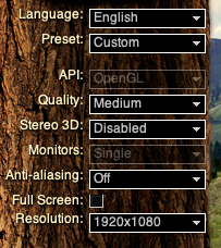 Valley using the following settings;
