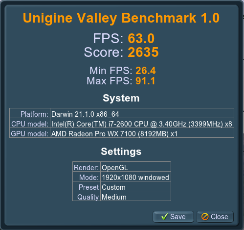 It's not about the temperature. And it's about the OpenCore loader. This is true!!! I have a peak temperature of 56 degrees. I tested it all day. Maximum 56 degrees. I have a WX7100 video card plus your bios. Why are you 90 degrees ??? Is the radiator firmly in place? White thermal paste? Or gray? Not just asked about thermal paste. If it is gray and liquid, then it is bad, the temperature will be 80 degrees. But white and hard - it is perfect, it holds a maximum of 58 degrees.I tested on Monterey 12.0 Beta 10 today and MetalBench and Valley scores were very similar to the ones achieved on Big Sur - before and after sleep.