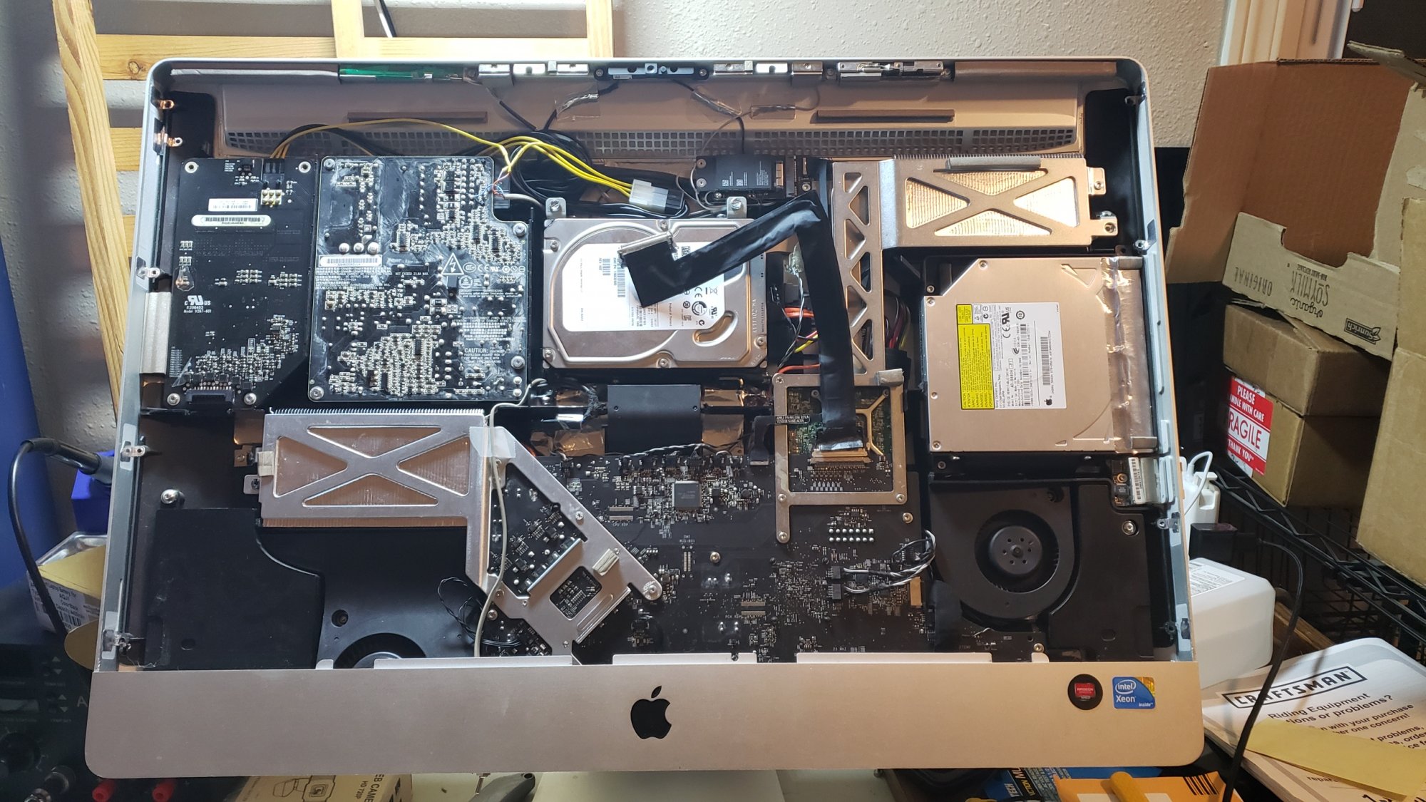 Step 3.5 Reassemble the iMac, pray to whatever higher being(s) you believe in, and push the power button If all is well, you'll hear the startup chime (unless you had audio muted) meaning the machine is alive. If you have a DisplayPort connected monitor, plug it in and make sure you see the bootscreen on it (at this stage, internal bootscreen won't work. Windows stays on the external monitor, and macOS only turns on the internal screen once it finishes 70-ish percent of its bootup process)