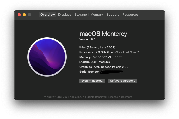 iMac 11,1 (2009 Late) 27-inch, i7 CPU, 16GB memory.