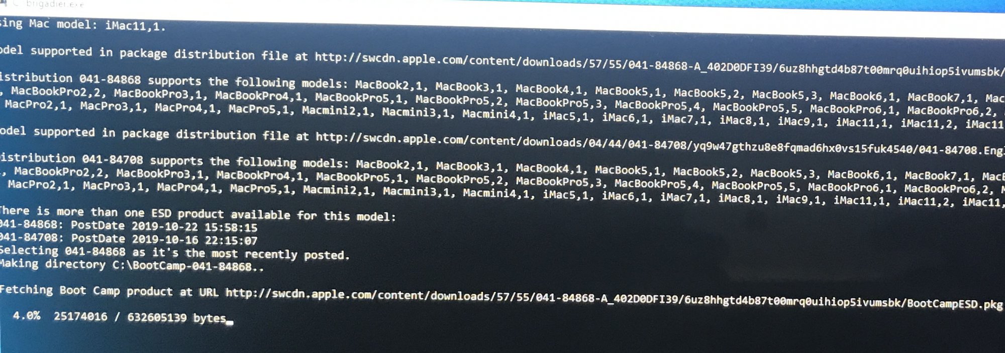 I tried to use brigadier-0.2.4 to download the bootcamp drivers in Win10_21H2. The address in CMD is as follows,