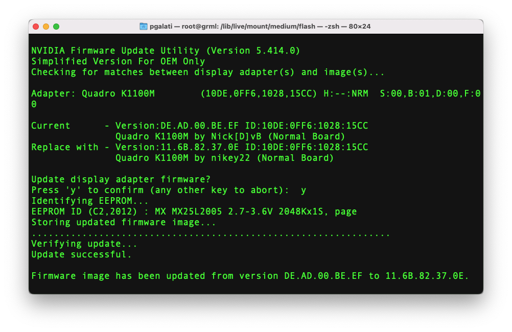 - I download nvflash and found a ROM for my K3000M in this page: https://www.techpowerup.com/vgabios/134051/hp-quadrok3000m-2048-120606