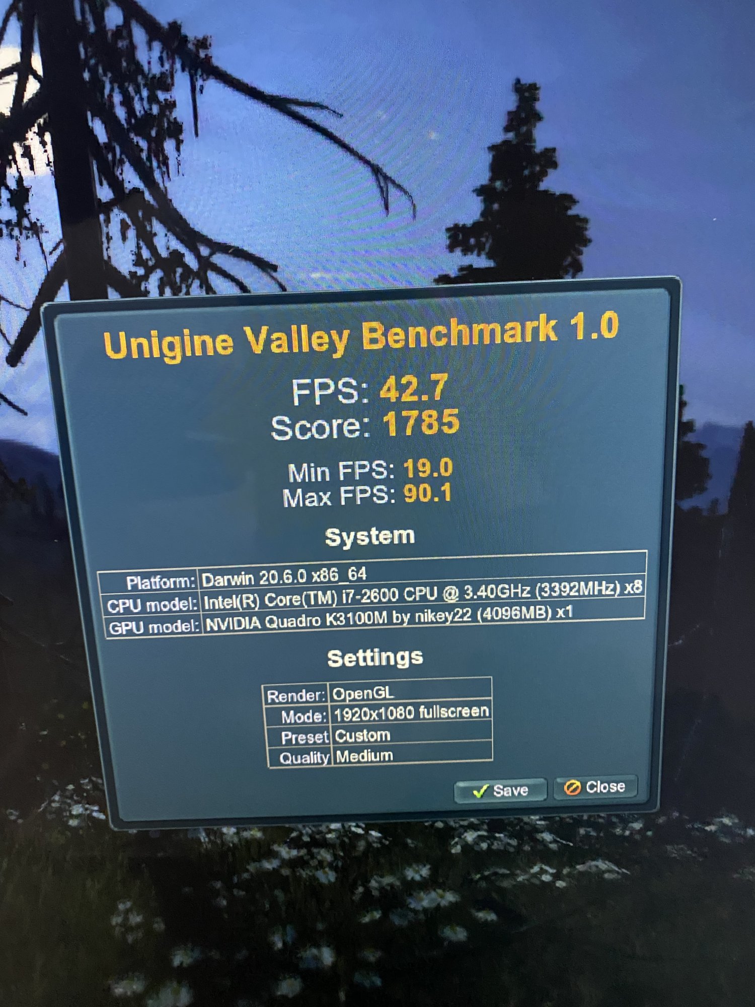 I made a Geekbench test and was surprised that the result was in par with the 6970M. I thought it should be faster. All in all the iMac is working fine, no problems at all with the K3100M except for the internal display and that is a must for me.