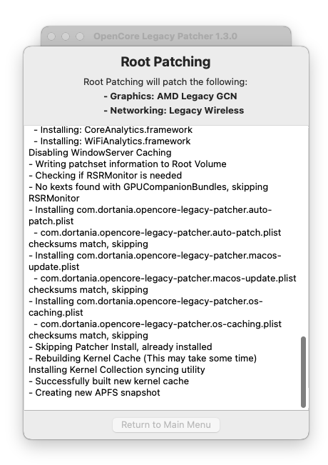 • OCLP installation may encounter errors but can always succeed by resuming ( link )