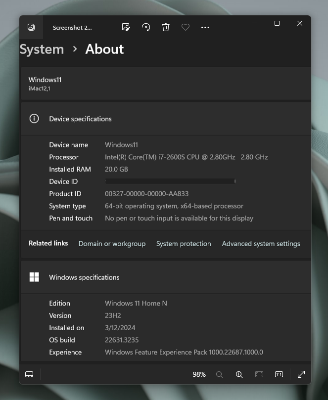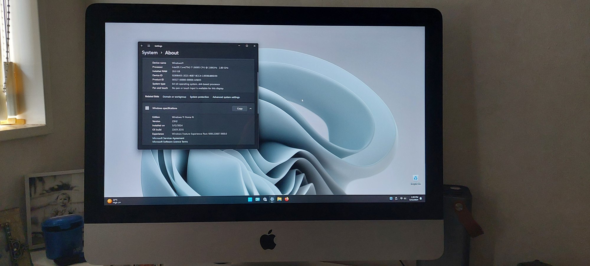 I also installed Windows 11 just to add another set of challenges, was a little tricky getting installed. Lots of BSOD's took a while to get it working smoothly. Installing the right drivers took some patience, and finding files that would cause the plethora of 'blue screens of death' that Windows seems to delight in handing out. Also little things like Apple bluetooth mouse and keyboard needed configuring to work with both OS's without having to disconnect then reconnect when going from one OS to the other, scroll direction on mouse etc. Windows 11 now works smooth as custard, better on the iMac than the near new HP laptop.