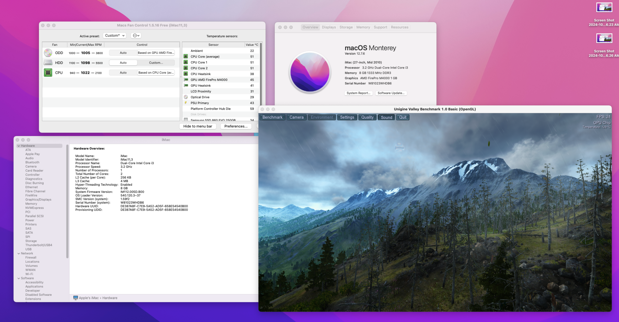 - Valley: > 65 FPS, > 2729 (is more limited by GPU core and CPU frequency, not so much by resolution)
