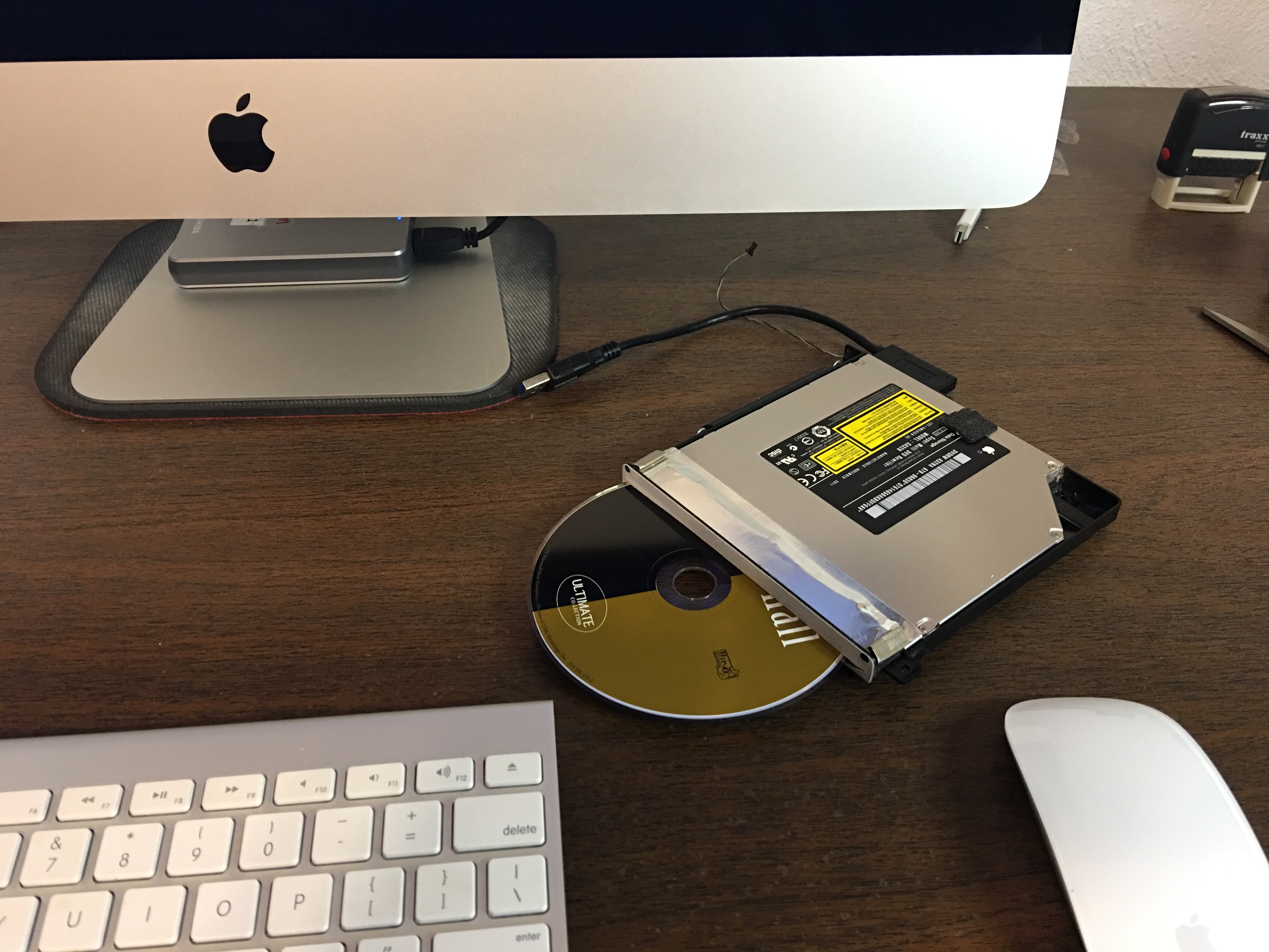 I removed a good working internal optical drive from my 2011 iMac 27". Bought a USB cable for it hoping to use it as an external with my 2014 iMac 27" which of course has no internal optdrive.