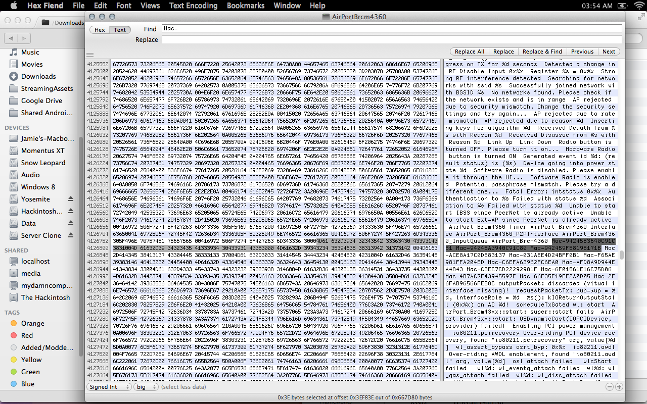 Anyway, I'm not some crazy hacker genius or anything, it's a pretty simple hack. In DP3 Apple added a bunch of Mac board id's to AirPortBrcm4360.kext (It's in the Plugins folder in IO80211Family.kext) so that only Macs that came with the card could load the kext. As you can see in the screenshot, I just took the 3 first board id's and changed them to the ones from the 2011 13, 15, and 17 inch MacBook Pro.