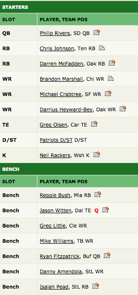 Heh I was just reading that as it happens.I'm not sure why I'm helping since you ignored my advice about taking Tim Tebow....but Rackers was just released by the Skins (Gano won the job), so you may want to look for another K.![]()