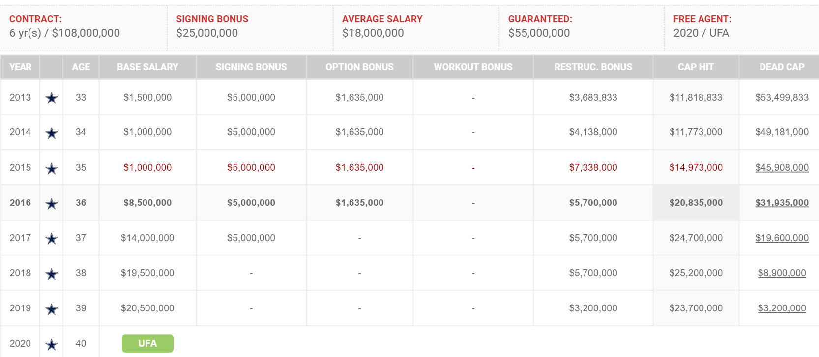 Throw in the fact that the cowboys have a cap number are looking rather high in the next couple of years.