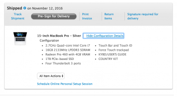LOL. im in NYC tooWow that's funny. I have the except same tracking information as you so far and the same spec laptop, but mine is Space Grey. Mine is headed to NYC. You?