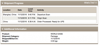 Last Location: Shanghai, China, Saturday, 11/12/2016