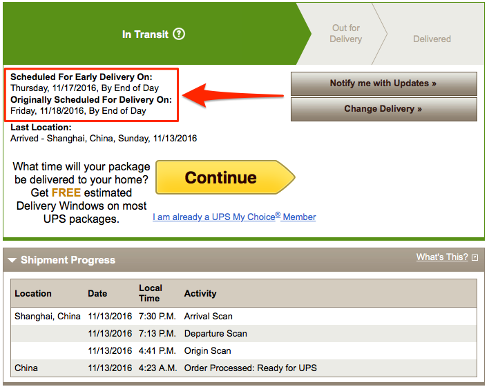 An interesting detail (see image below): UPS says my delivery was originally scheduled for Friday but is now scheduled for "Early Delivery" on Thursday. I don't put too much credence in this "early delivery" line, but it is interesting.