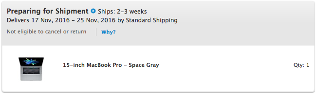 My original delivery window from Apple was November 17-25.