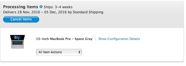 Edit: Mine is a BTO 15' Space Grey that ships to Upper West Side, NYC.