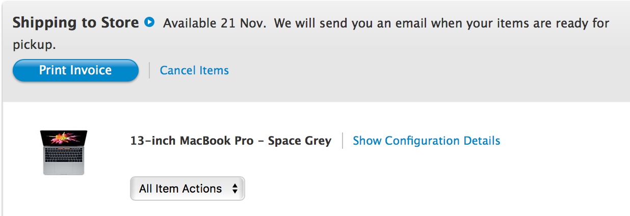 I received a weird email from apple titled "your invoice #" and it has the serial number from my new machine as well as tons of info about it, and it's a very basic email, it looks like an internal email, it's all black and white numbers and lines, like some kind of accounting reportHow'd you get that first pic/screenshot with the info that it is shipping from Cali?