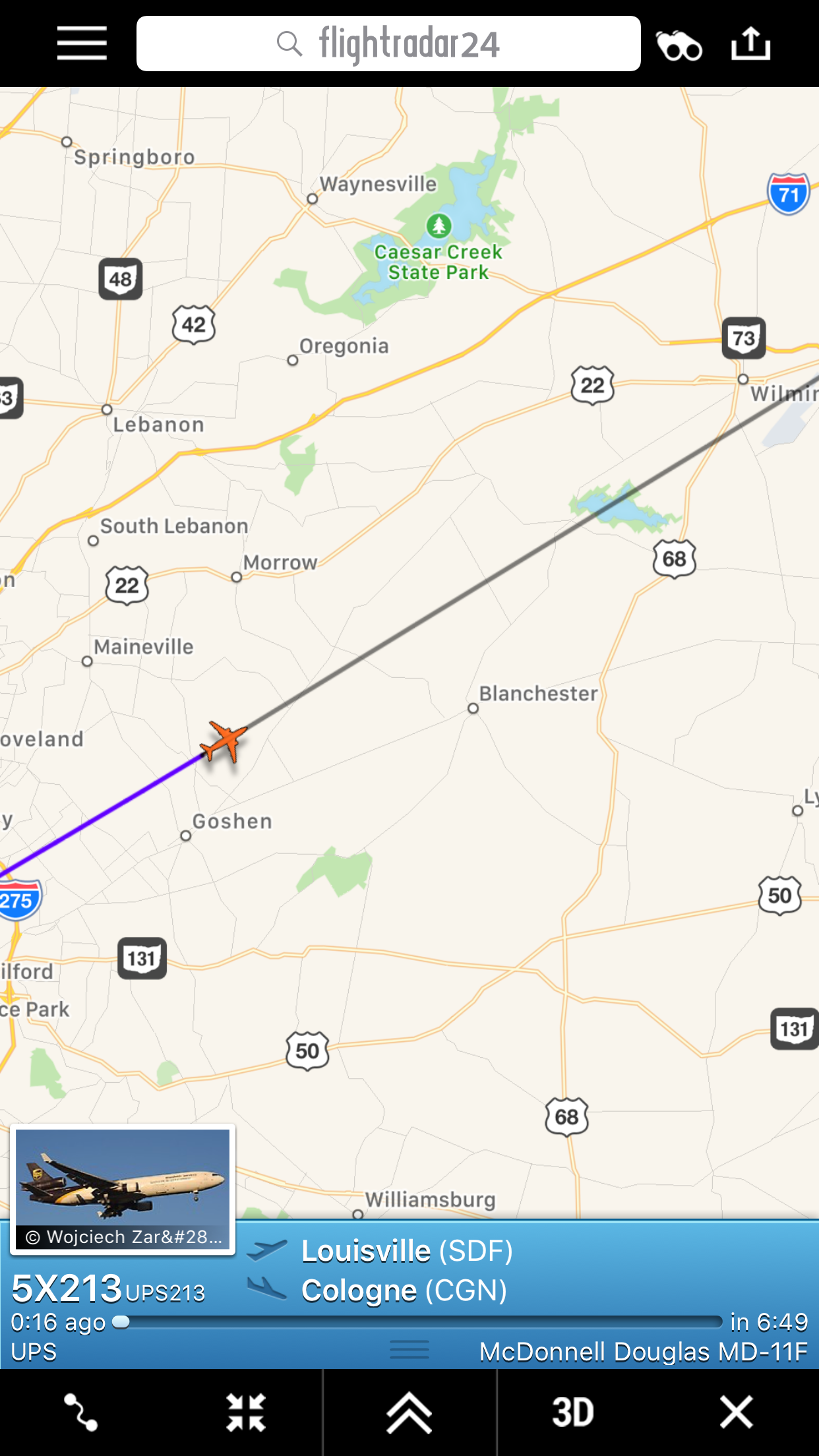 Hmm. Looks like flight UPS 1326 from Louisville to Orlando has been delayed a half an hour or so. FlightAware link.
