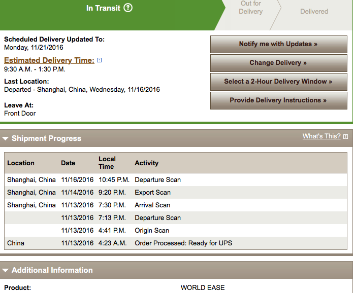 It was sent UPS, though.