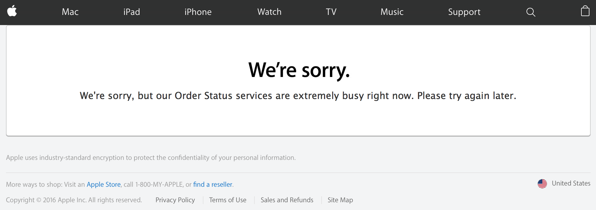 Called Apple, but only got through to tech support, lady was kind enough to open a case number but have to call tomorrow again, as the Apple online store doesn't work Sundays. (or at least their billing dept)
