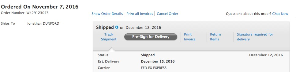 Ordered 13" i7 16gb ram 512 ssd on 11/10. Charged on 12/10 and marked as preparing for shipment. Shipped on 12/12. FedEx scheduled to deliver on Thursday 12/15. My original window was 19-23. So excited!!!!