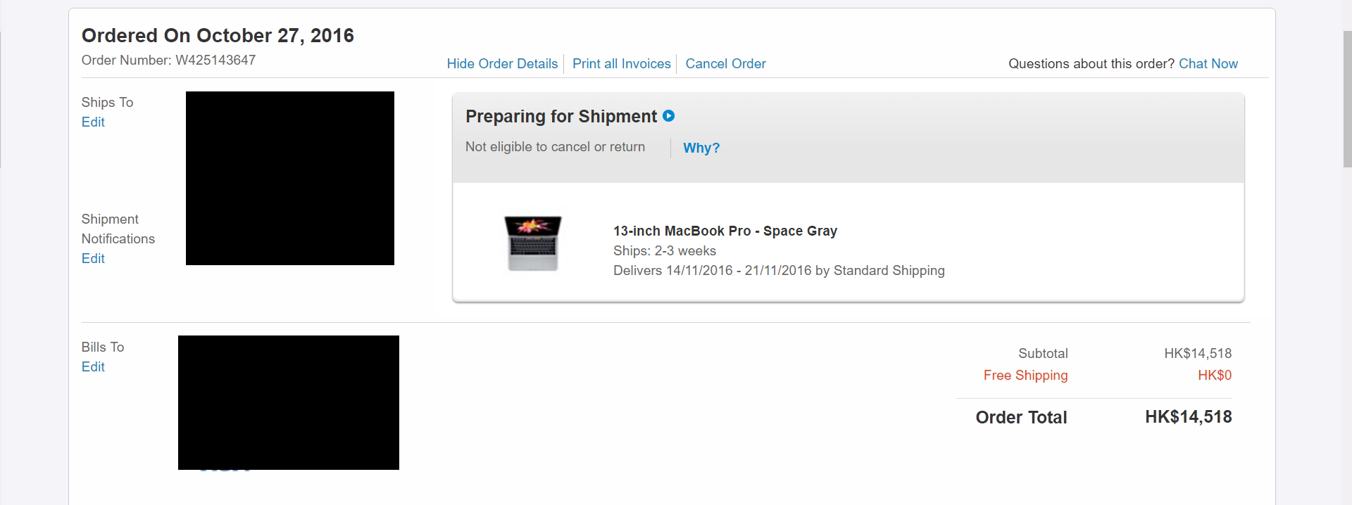Then it's probably a fake, as the order was placed on October 28.The order above is the touch bar order. The non-touch bar orders have the macbook without the touch bar in the photo. The macbook in his photo has the touch bar and is therefore a touch bar model.
