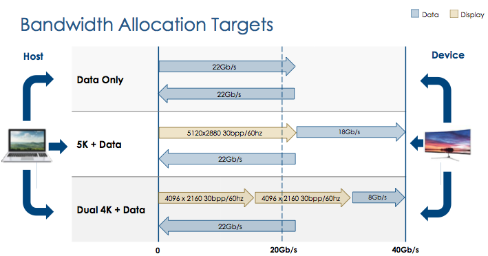 Most likely its an error, the data actually matches a 5K 24bpp 60Hz + overhead, at 30bpp it could reach 26 Gbps still left 14 Gbps good for a single channel TB1 plus full bandwidth USB3.Mago, the raw bandwidth needed is over 26G if my calculations are correct. Protocol overhead comes after that.