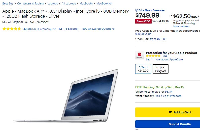 For anyone interested in a new 2017 Macbook Air, Best Buy has a sale going on. Not as good as the $799 sale on Amazon for the i7, but still not bad.