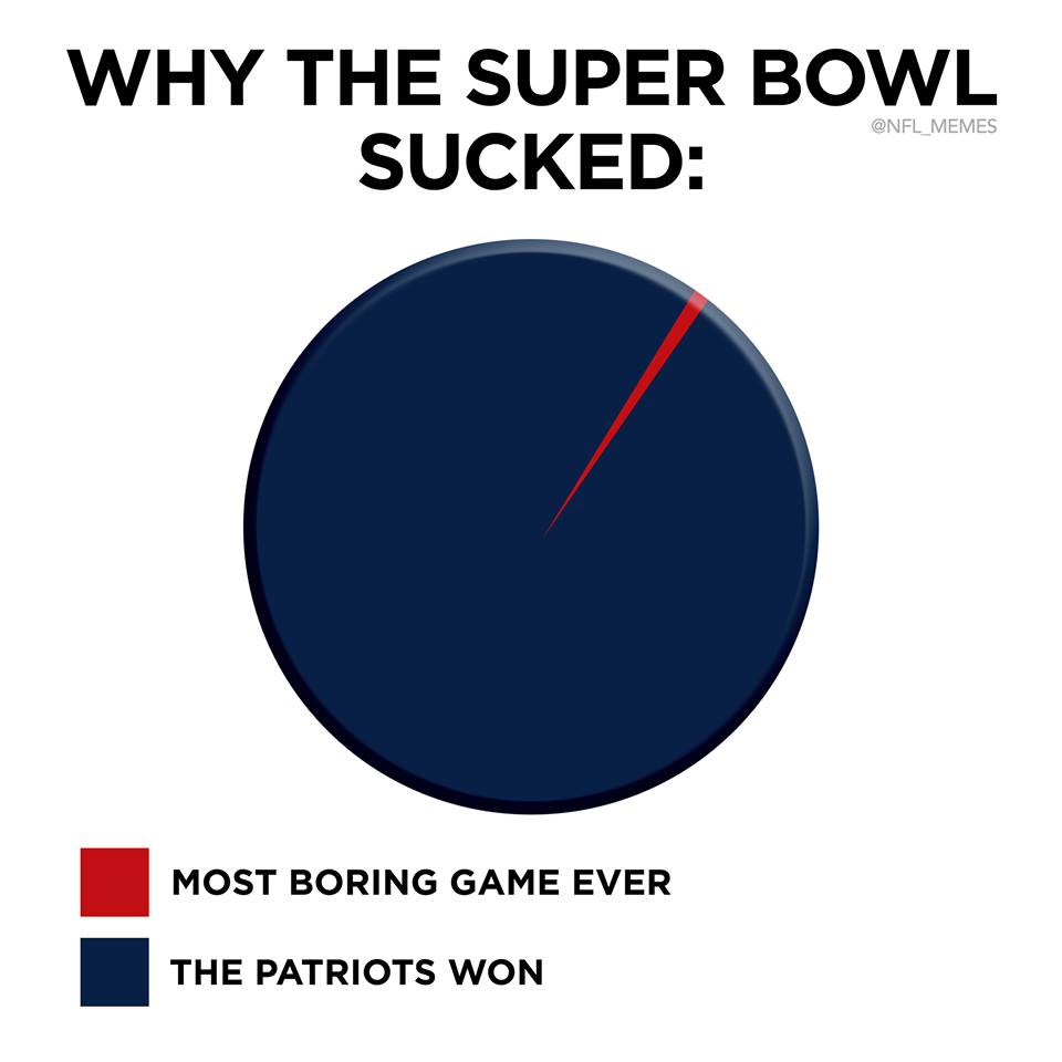 Also add in the fact that the Patriots have been there 4 out of 5 years and people do get tired of seeing the same team over and over.