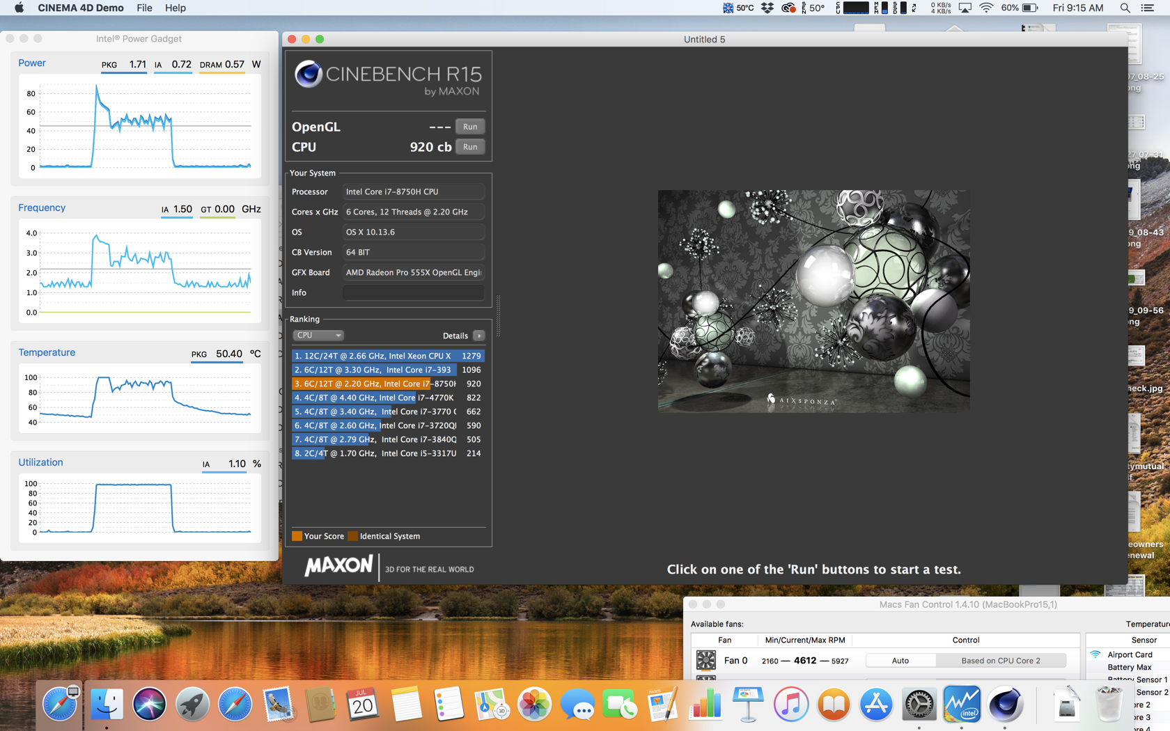 I'm using Macs Fan Control, but even without that, I'm seeing CPU only numbers in the 920 range. It spikes right up at 100c and then starts banging around the 90c range until it recedes back to something more respectable.