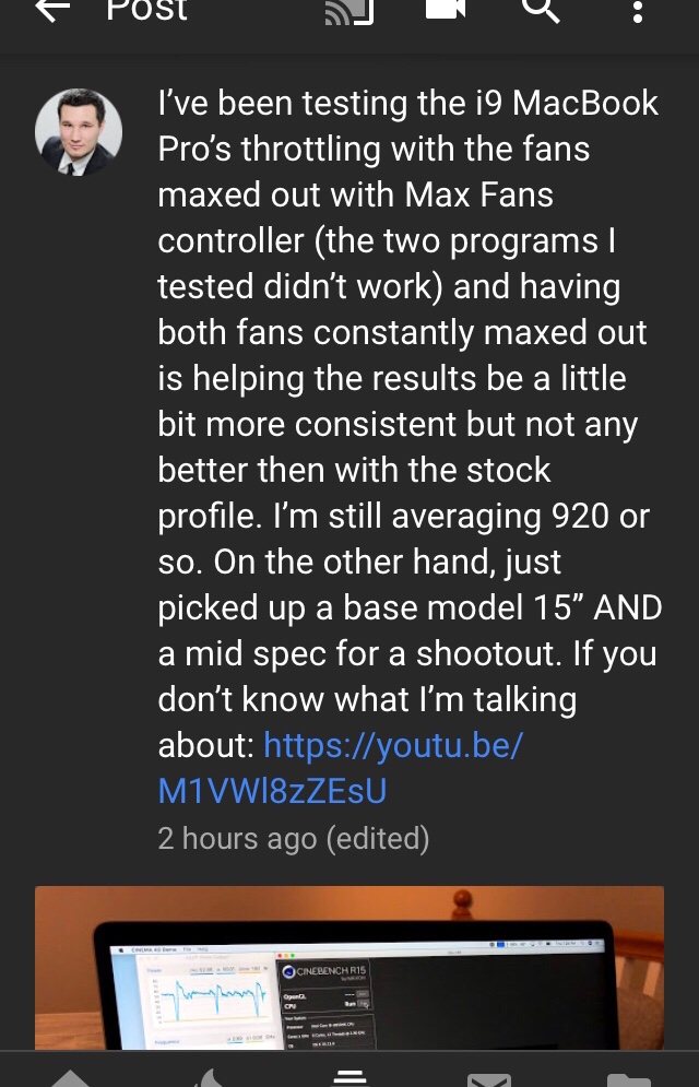 The saddest thing is, $15B a quarter of pure cash profit per quarter is apparently not enough to engineer the best laptop in the world anymore . Others are building rockets that can land back on floating structures, targeting Mars travel, supersonic trips to Paris, building hyperloops, attempting to cure cancer, feed the hungry or rid us of malaria with their cash. But no, our boys @ infinite loop can no longer design a thermal paste or cool a cpu correctly. And they lie to us about it. The suits are just laughing at us.