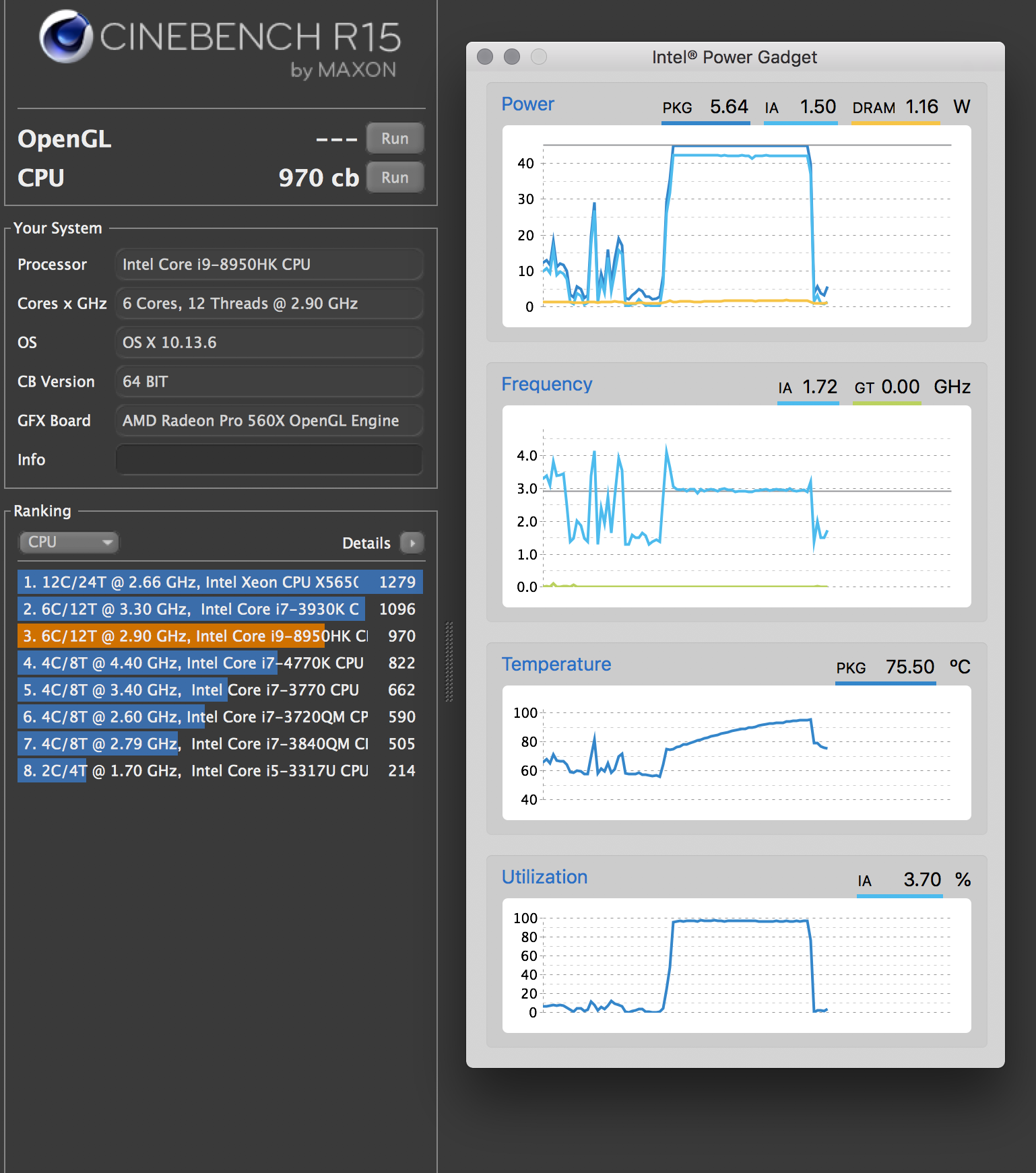 inside the i9 itself so it works better when pushed to 100% usage? Because if that's not possible then the only other way to comprehend this fiasco is that the fan curves as set now in the firmware/UEFI of the 2018 i9-based MBPs needs some fixin' and fast. Any application or program that pushes the i9 to max performance aka 100% CPU usage is going to make these thermal issues appear, whether it's 3D rendering with Cinebench, 4K+ video rendering with Adobe Premiere or Final Cut Pro, multiple instances of Prime95, multiple terminals running multiple instances of yes, whatever - 100% CPU usage is 100% CPU usage and that's that.