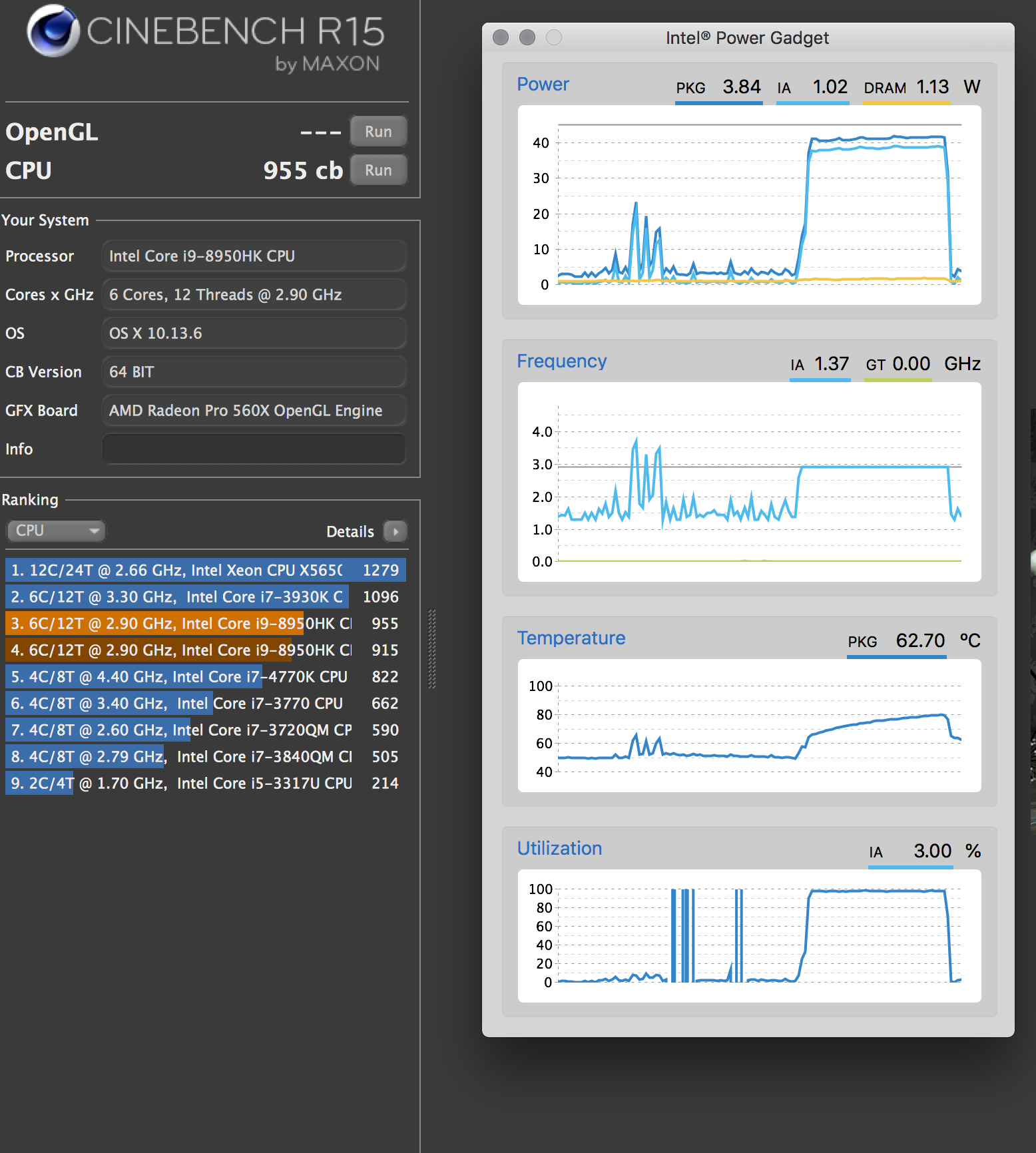 The result in cinebench with a fixed 45W limit looked very similar between the i7 and the i9.