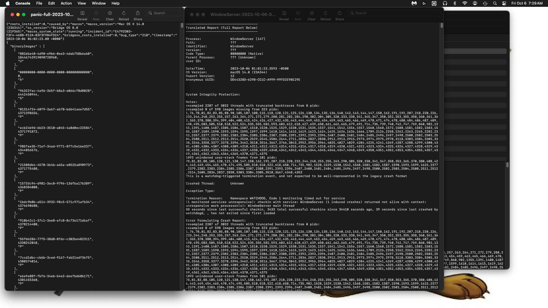 I keep getting window server crashes in the last week. My 2018 Mini has a 3.2 GHz I7 with 32BG of memory. I am running two HP V24i monitors. The crashes started last week when running the latest update to Monterey. I updated to Sonoma yesterday and it still crashed overnight. Along with the WindowServer crash I got a Kernel crash too. I have tried changing setting s that were suggested to fix this issue.