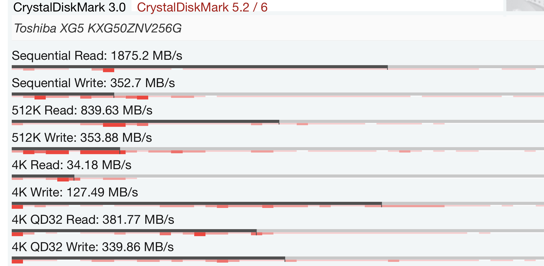 I’ll test my sister’s XPS 9350 when she comes it has a PM961 because I recall getting over 1GB/s writes. Even if it only had 2 lanes 300-400MB/s only makes sense if it saturated the dynamic SLC cache and was writing directly to TLC portion after 10-40GB if continued writes depending on drive size. The Toshiba XG5 I know needed an update as it was hitting only 300-400MB/s even without saturating the dynamic SLC cache, it can hit around 1GB/s normally. Pretty sure the two lane limit was on the TB3 port on the 9350.