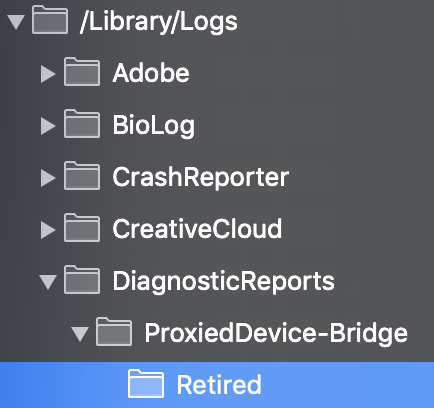/Library/Logs > DiagnosticReports > ProxiedDevice-Bridge > Retired (picture to help)
