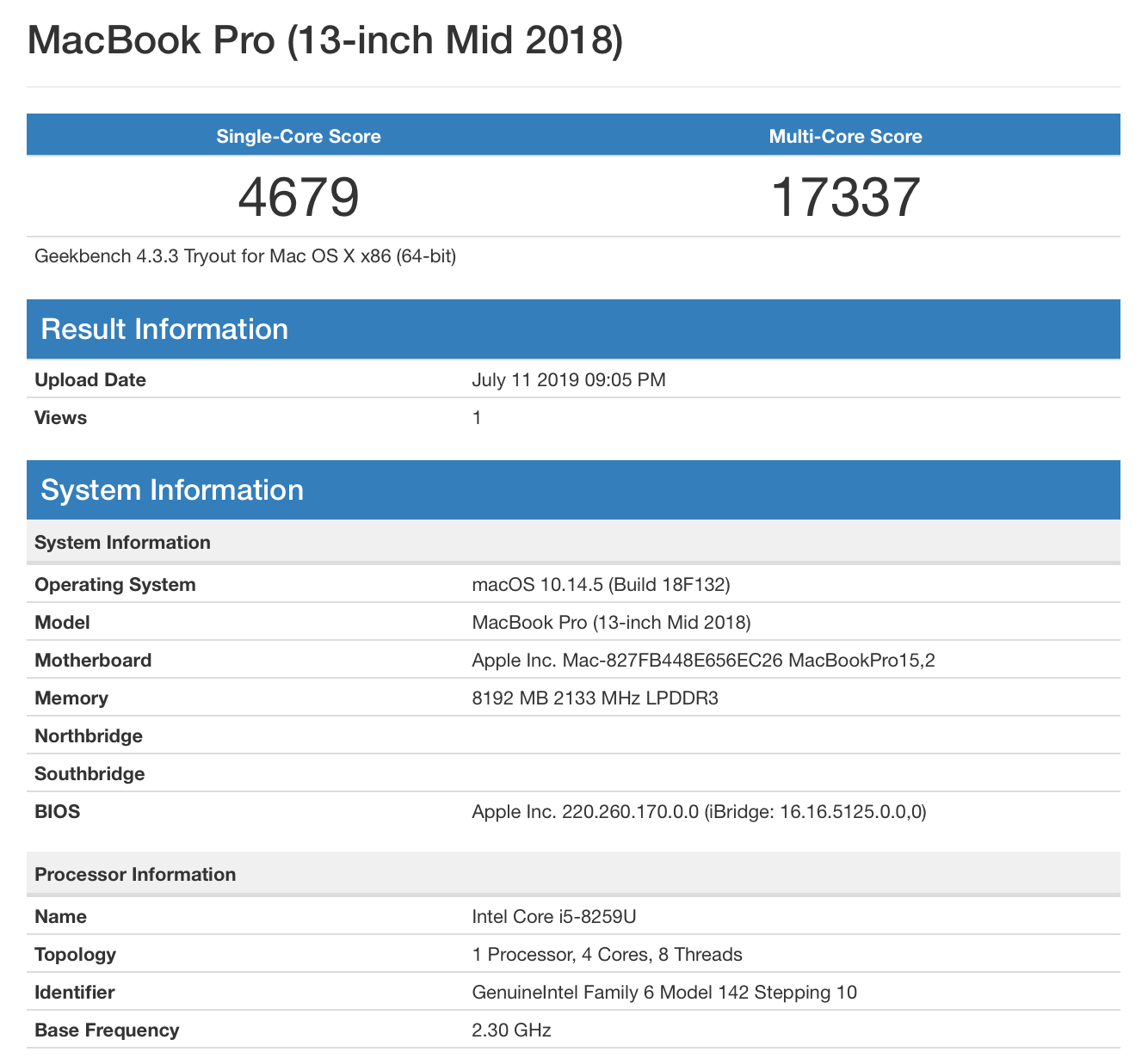 That was a nice find. Seems that the CPU would be good step up from Air 2018, even single core results are not earth shattering.Single: 4,775, Multi: 17,086. Almost like his 2.4 GHz sibling (Single: 4,993, Multi: 18,283)