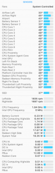 Are u using left TB3 ports to connect external monitor? If yes - its known issue with left TB3 ports, try to reconnect monitor to the right side. As for me, I have i9 2.4Ghz 32Gb Ram 5600m and with external Samsung monitor 3840x1200@120Hz, I have next results on browsing mode. Also I have turned off TurboBoost, but in case of browsing - there is no difference in temperatures with TurboBoost on or off.hello,yesterday i received my 16”mbp i9 2.4 64gb with 5600m.Its connected to my 27"asus 2k 60hz monitor , i see fans idling around 3200 rpms and it bothers me.As i read the 5600m shouldnt have this problem.Any ideas?View attachment 954974