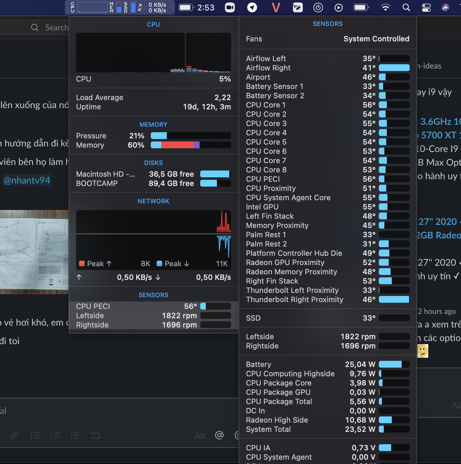 Not to mention also the heat from thunderbolt proximity when you connect any peripherals to the thunderbolt 3 ports including the monitor, around 56 celcius (compared to 38 Celcius when not connecting anything). This is also another problem which contributes to the fan speed increase. It is like a self-defense mechanism of the mbp, "need to dissipate heat as soon as possible when too many sensors detect temperature above 55-60 Celcius". Just my thought.