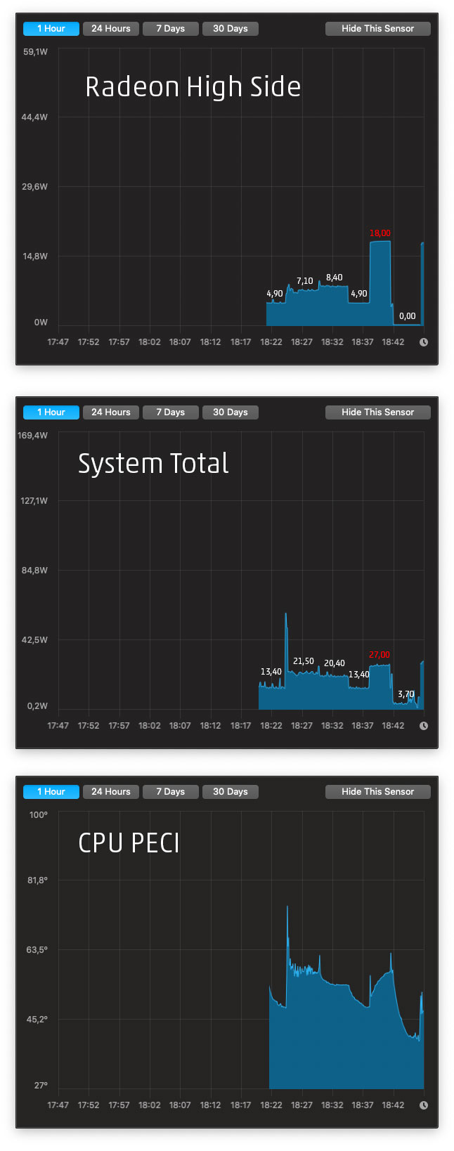 By the way I still find strange, as per my last post, that something is firing up on the side you plug the monitor in, or even if you just plug in a USB device like a hard drive. While the 15" didn't fire up the Thunderbolt controller if there wasn't any Thunderbolt connection to establish, it seems that the 16" does even for USB. If the system undocked is 3,70W, and the dGPU in idle is 4,90W, there seems to be another 5W lost by powering the Thunderbolt chip, even if the monitor is just using DisplayPort through USB-C.